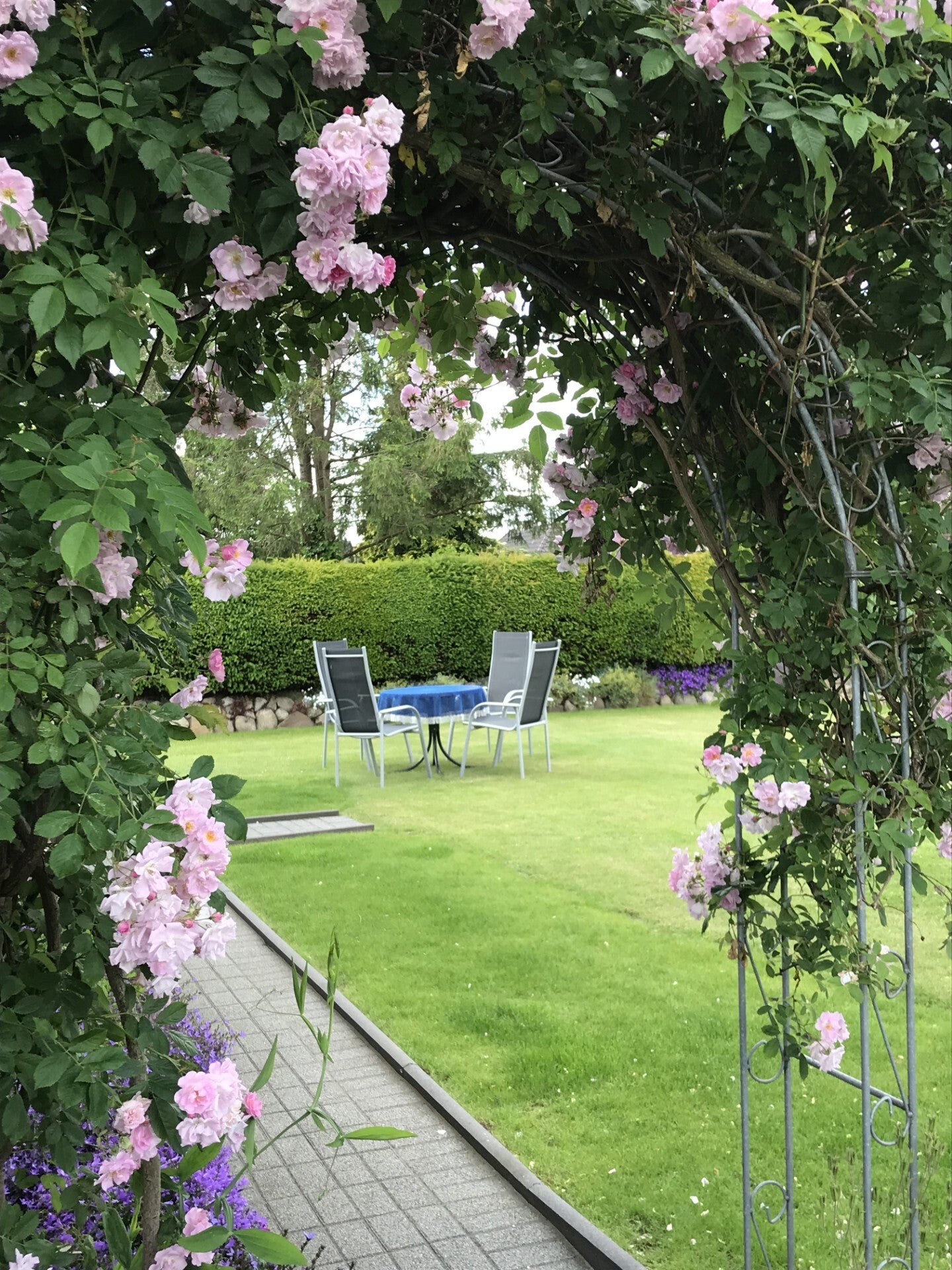 In unserem Außenbereich erwarten Sie bequeme Stühle und ein großzügiger, weitläufiger Garten – perfekt für gemütliche Abende . Außerdem gibt es auf Anfrage Räumlichkeit für das Unterstellen von Fahrrädern.